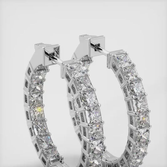 Princess Cut Diamond Hoop Earrings Small