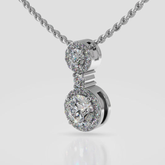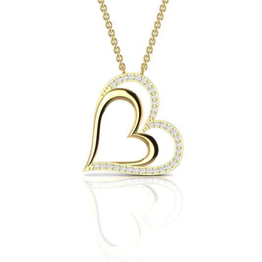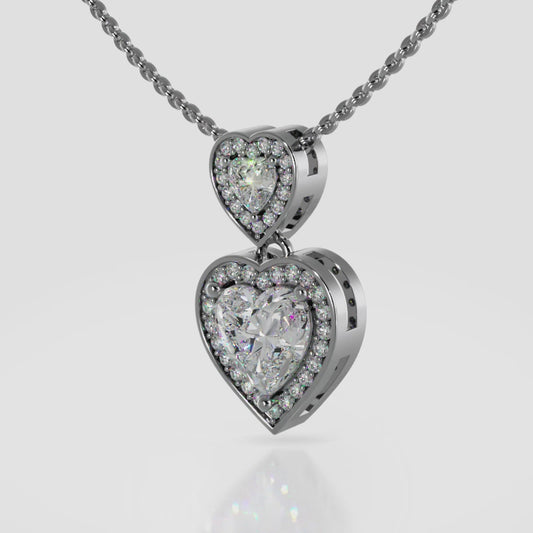 Double Heart Shaped Diamond Pendant with Diamond Accents