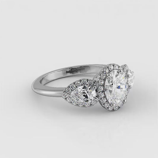 Pear And Baguette Three Stone Diamond Engagement Ring
