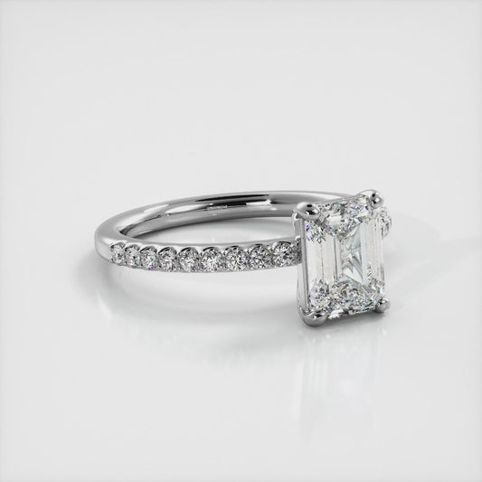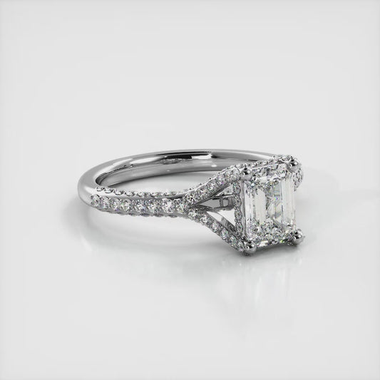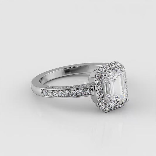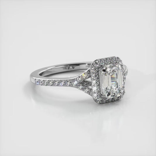 Emerald Cut Halo Diamond Engagement Ring With Split Shank