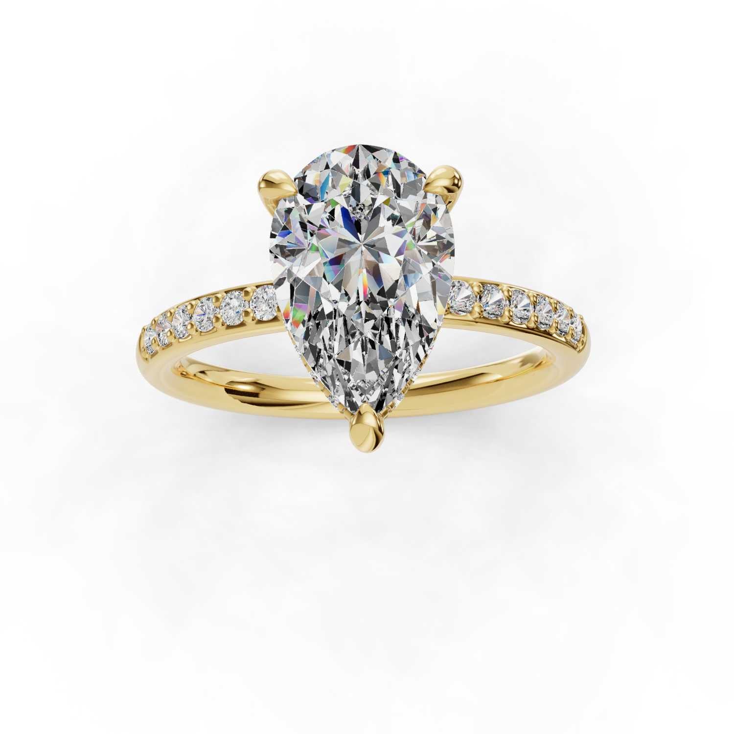 Halo surrounds the shimmering pear diamond in the center with your choice of carat weight, metal type and diamond quality.