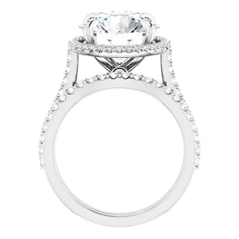 Beautiful round side diamonds surround the elevated center diamond available in various carat weights from 1 Carat up to 5 Carat