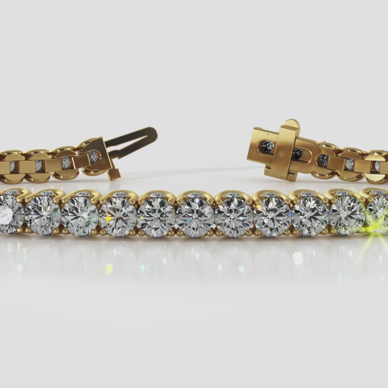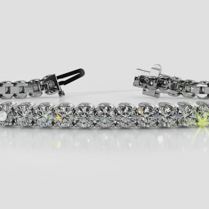 This stunning tennis bracelet sparkles and shines from every angle thanks to beautiful side diamonds that adorn each center diamond's setting. Select yours in your choice of 14k or 18k yellow, or white gold or platinum.