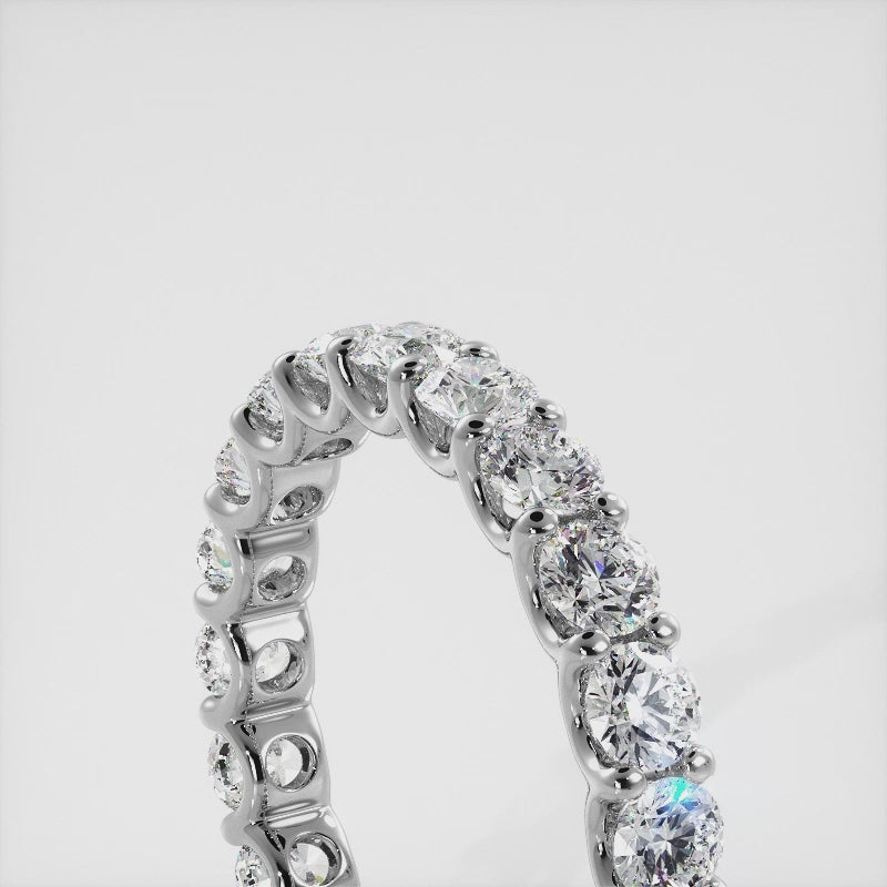 This beautiful diamond eternity ring features a U-Shape prong setting design which shows the diamonds from the top and the sides. The brilliant cut diamonds sparkle from every angle.