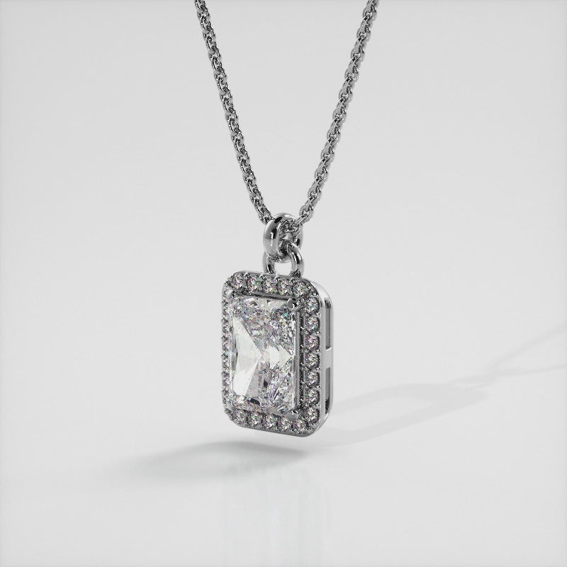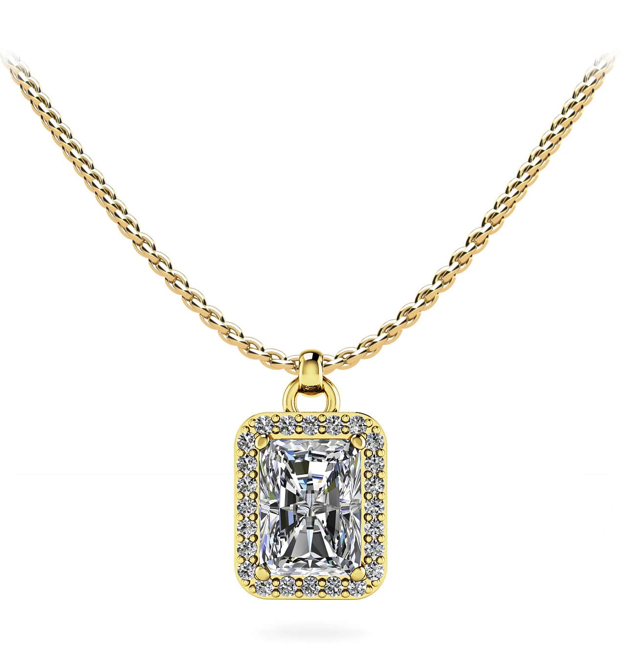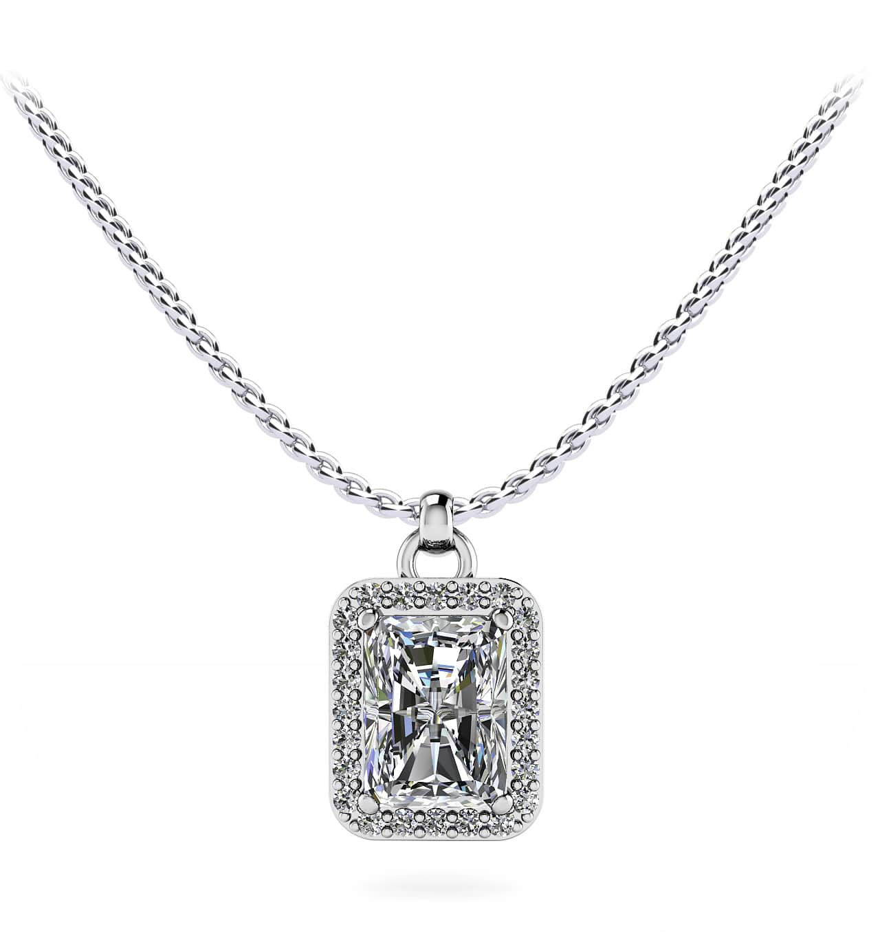 An elegant emerald cut diamond framed by a halo of round diamonds creates this classic pendant necklace. A touch of classic style for your everyday look or complete the look with our Love Spell Diamond Drop Earrings for an evening out.