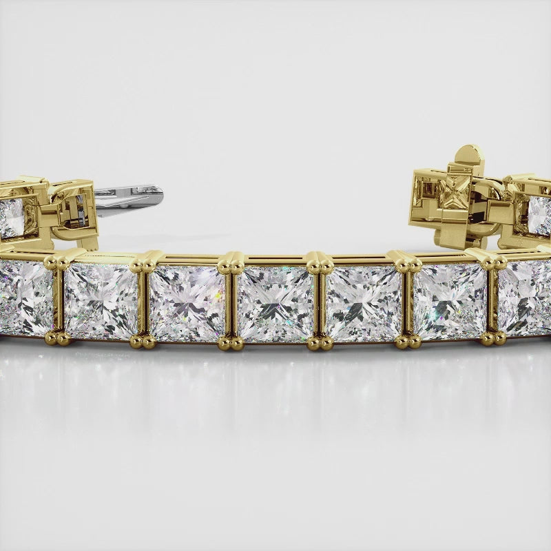 This gorgeous tennis bracelet features princess cut diamonds set in a line. The bracelet is designed to fit closely around the wrist, and the princess cut stones are arranged in a continuous pattern, creating a beautiful and elegant look. With its timeless style and sparkling beauty, a princess cut tennis bracelet is sure to become a cherished addition to any jewelry collection.