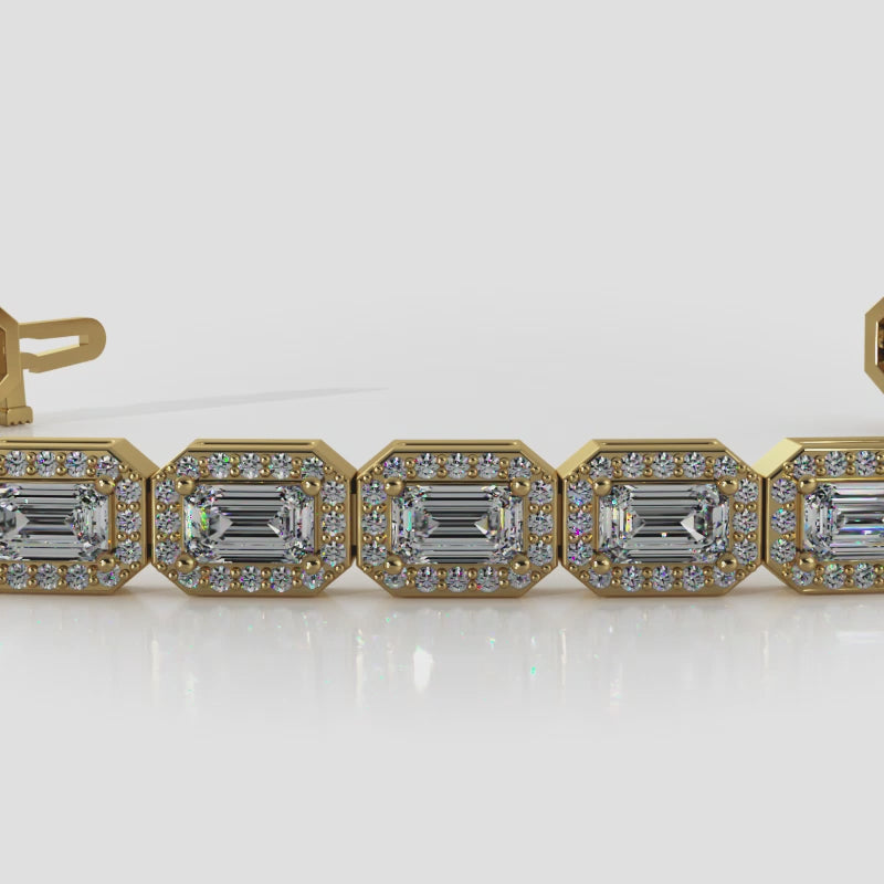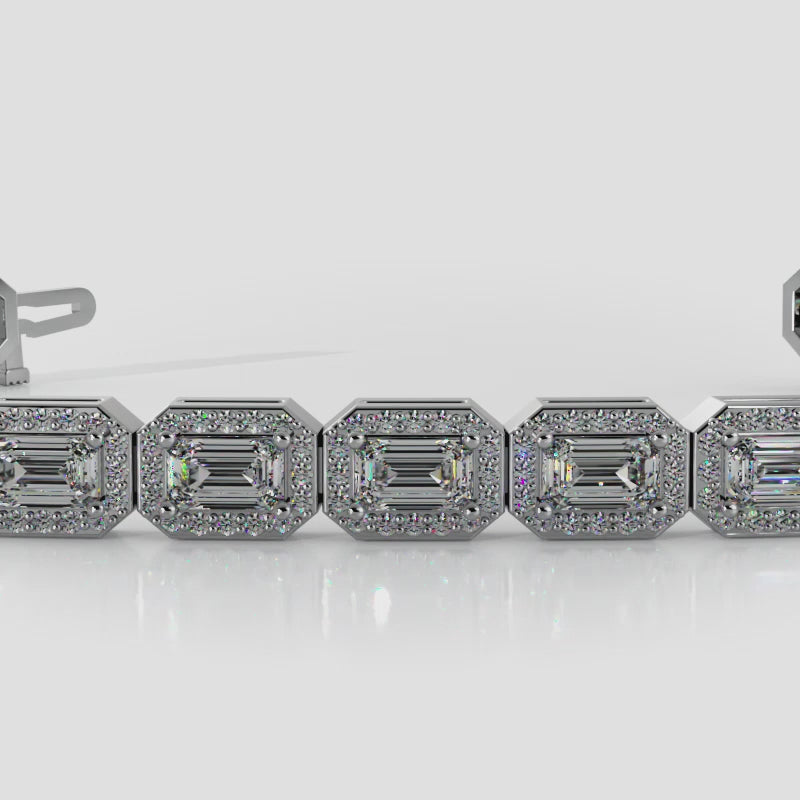 Emerald Cut and Round Diamond Halo Bracelet
