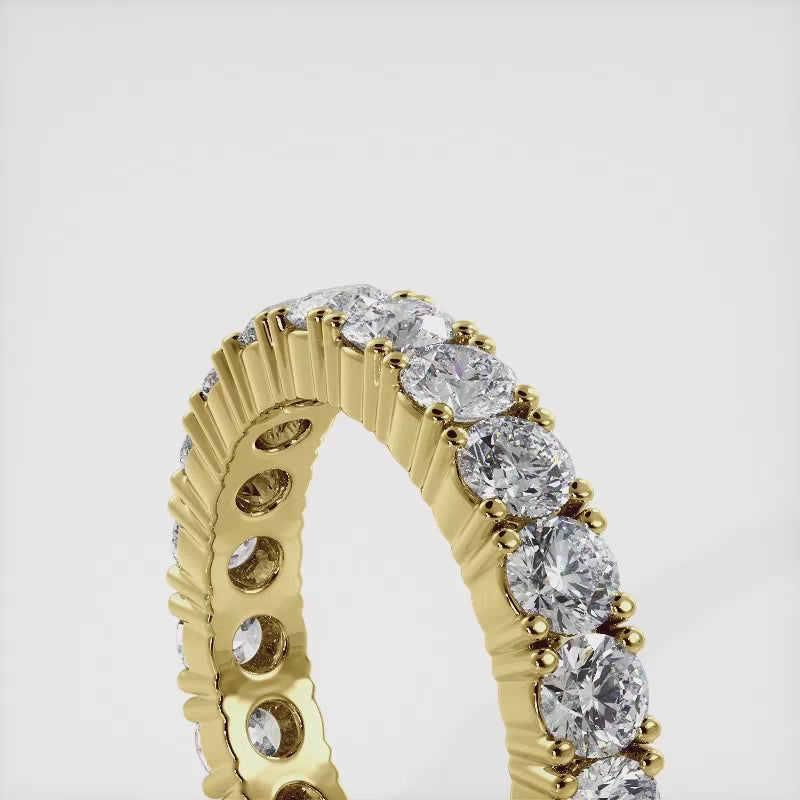 This elegant and classic eternity band is a stunning statement of beauty. Brilliant round diamonds are expertly set into the four-prong setting to make a perfect circle of harmony.