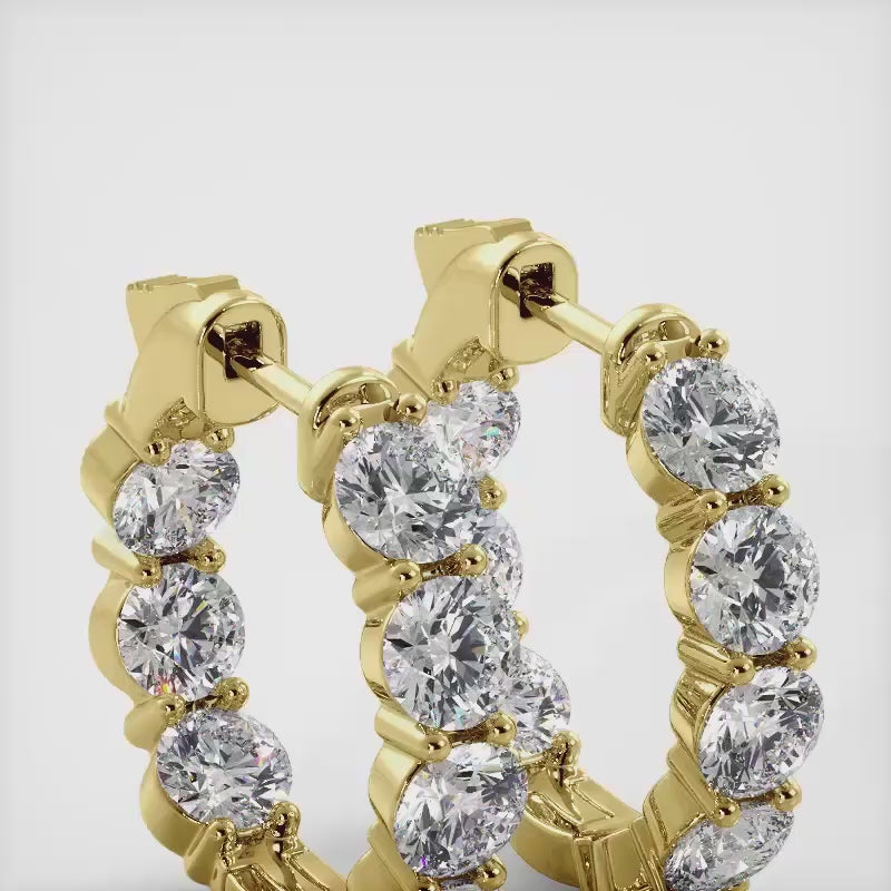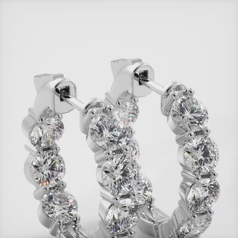 These luxurious diamond hoop earrings shine from both the front and the back. Select yours in your choice of 14k or 18k yellow, or white gold or platinum.