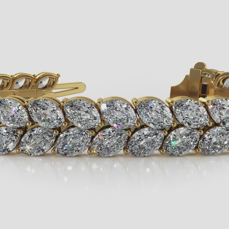 This stunning diamond bracelet features marquise shape diamonds set staggered creating flourish look. The effect is spectacular and the diamonds sparkle from every angle.