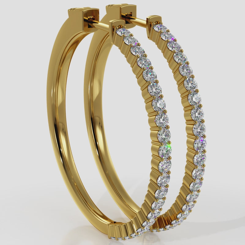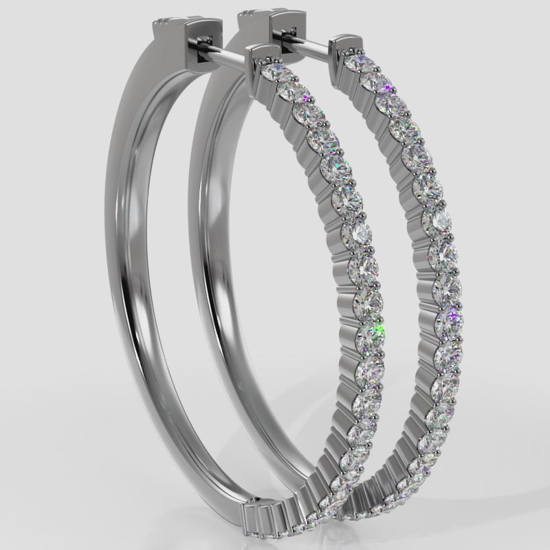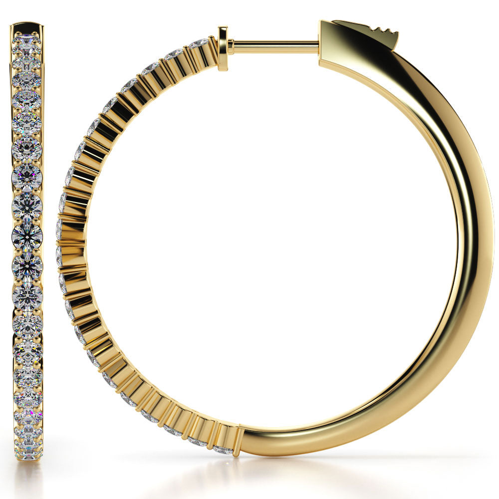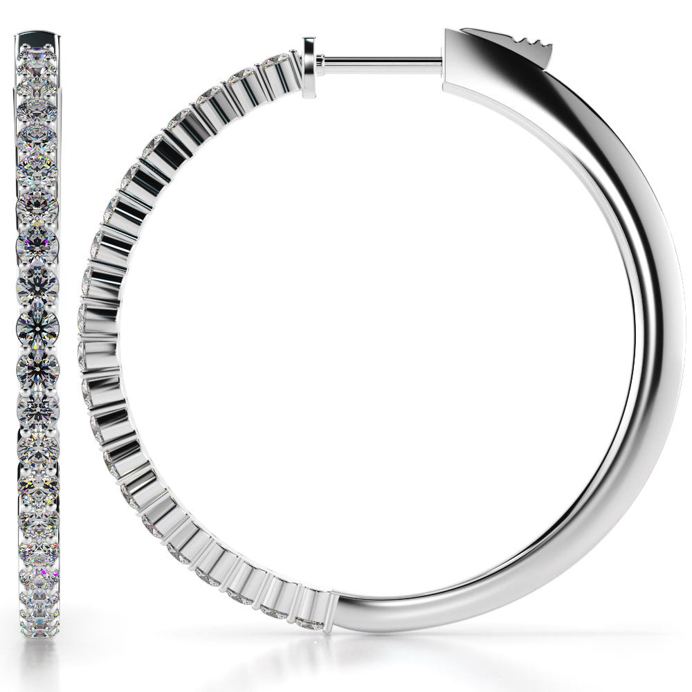Medium Elegant Diamond Hoop Earrings with Front Set Stones