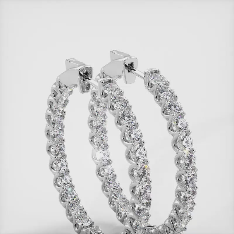 Dazzling and elegant these brilliant inside out diamond hoop earrings offer a sparkling touch to complete your look. Available in your choice of 14k or 18 k gold or platinum, each earring features perfectly set diamonds for an alluring glow. Completed with our easy to use and secure push button closure.