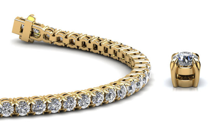 This stylish tennis bracelet features an extraordinary four prong setting with elegant curves. Customize yours with 14K or 18K yellow, white gold or platinum.