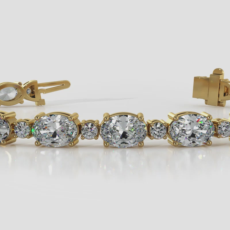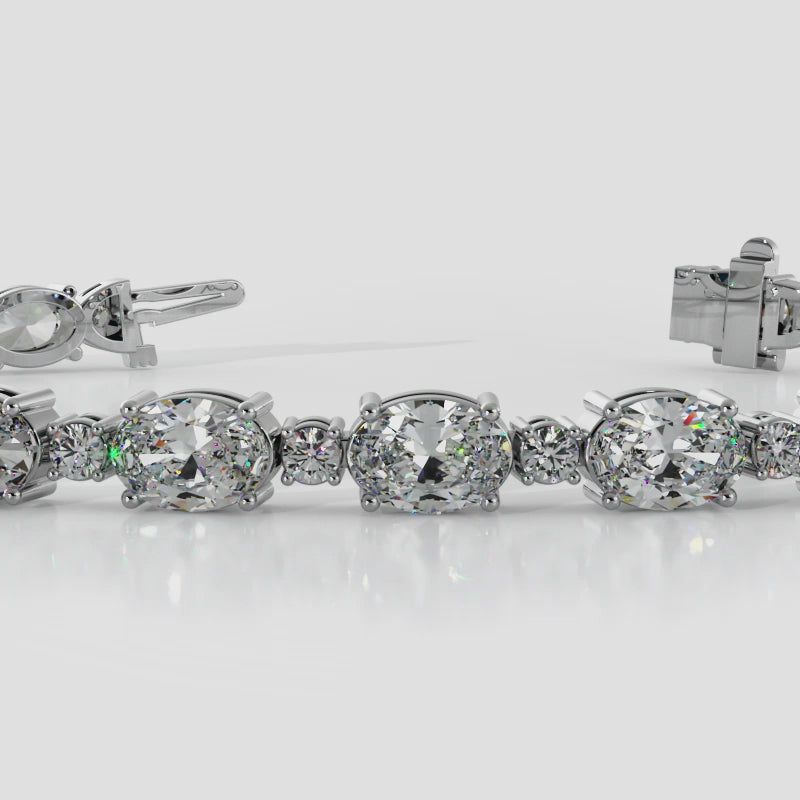This beautiful bracelet features oval shaped diamonds and brilliant cut round diamonds in between.