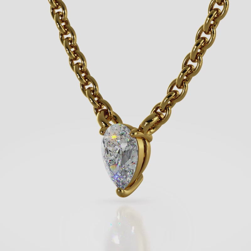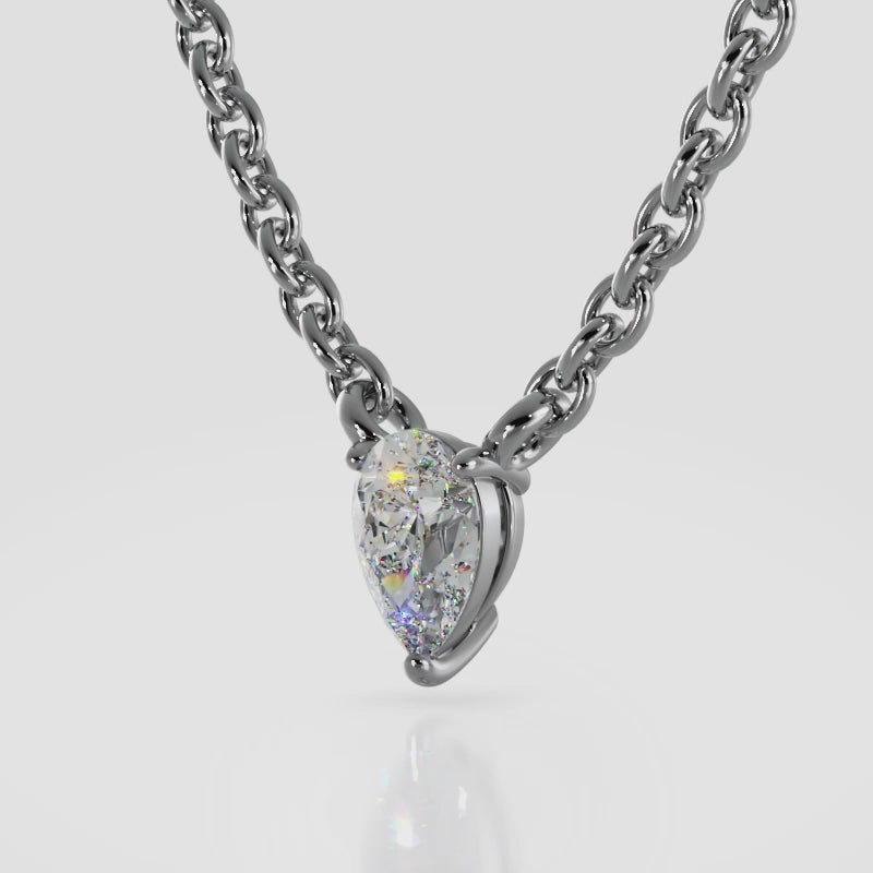 This solitaire pendant features a pear-shape diamond. Wearing this diamond pedant carries elegance everywhere you go.