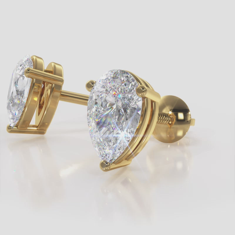 Pear-shaped diamonds, with their elegant and elongated shape, have a romantic appeal. Select a pear-shaped pair of stud earrings in your choice of 14k or 18k yellow, or white gold or platinum.