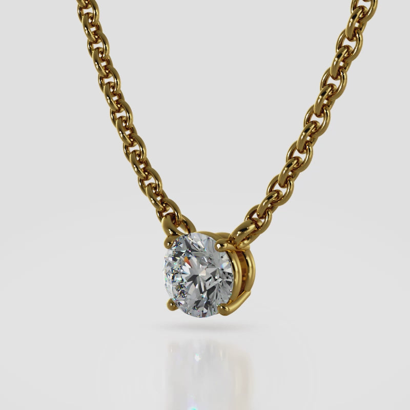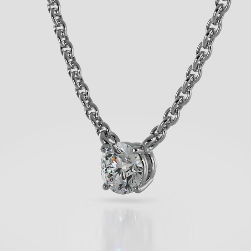 This is a classic must have diamond solitaire pendant. It features a brilliant cut round diamond and offered in many sizes.