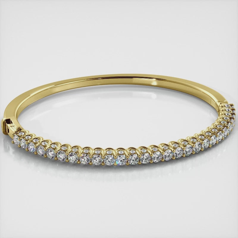 Sparkle radiates from all angles of this bangle bracelet that features specially designed settings with diamonds. Customize with your choice of 14 or 18K yellow, or white gold or platinum.