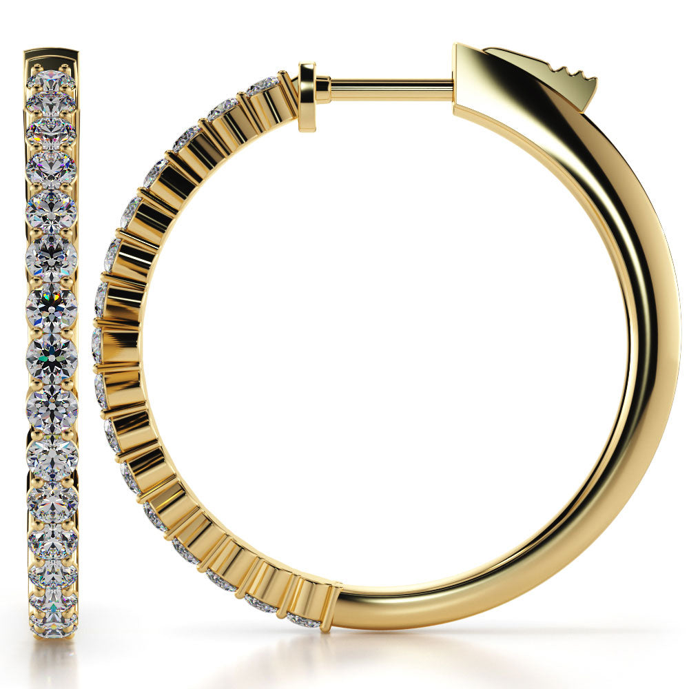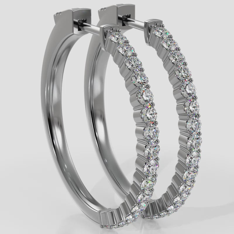 Small Elegant Diamond Hoop Earrings with Front Set Stones