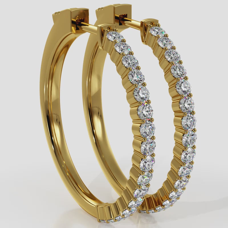 These elegant diamond hoop earrings feature a refined design with diamonds set only on the front section, creating a sleek and sophisticated look. The brilliant diamonds capture light from every angle, offering a stunning sparkle. For added security and comfort, the earrings are equipped with a reliable push button locking mechanism, ensuring they stay securely in place. Ideal for any occasion, these hoops combine timeless beauty with practical design, making them a must-have addition to your jewelry collection.