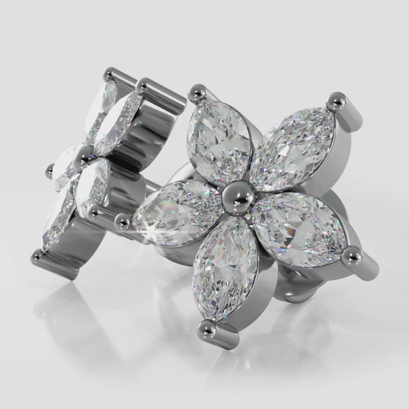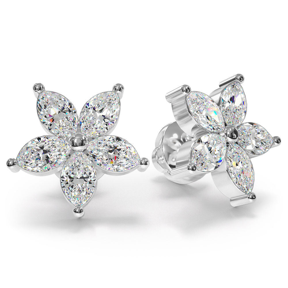 Elevate your elegance with these stunning 10-Marquise Diamond Stud Earrings. Each earring features a unique arrangement of ten exquisite marquise-cut diamonds, expertly set to enhance their natural brilliance. The sleek design creates a timeless and sophisticated look, perfect for both everyday wear and special occasions. Crafted with precision and set in high-quality metal, these earrings offer a perfect blend of luxury and style, making them an essential addition to any jewelry collection.