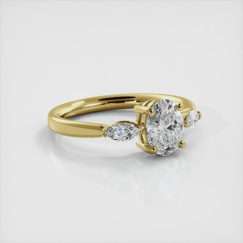 This classic 3 stone diamond engagement ring features an oval center stone and 2 marquise shaped diamonds on the sides.