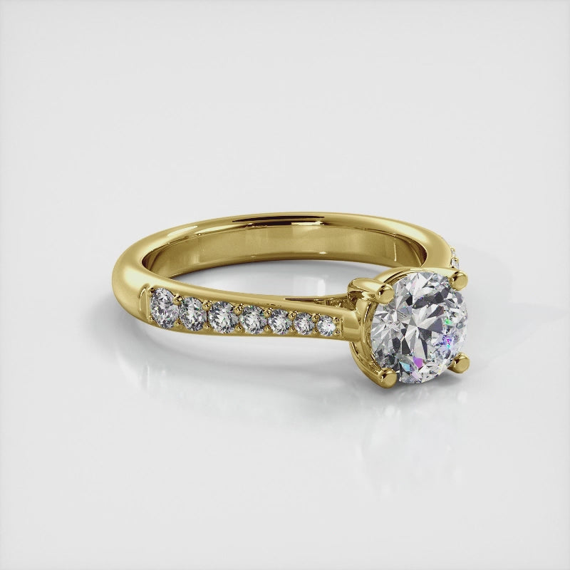 This piece is truly a classic. Inspired by our master craftsmen this piece was designed for the woman who possesses timeless sophistication. This beautiful ring features a round center diamond with between 12 to 16 side diamonds. The diamonds are prong set and also set into the band and slightly raised toward the center.
