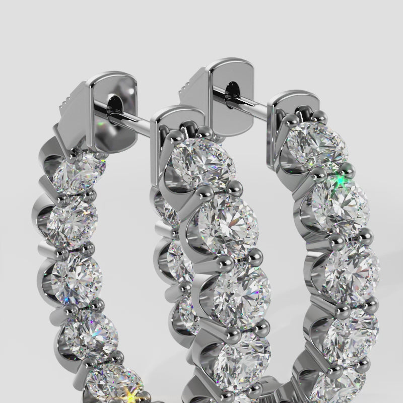 These stunning diamond hoop earrings feature a U Shape Cup prong design. This enables the diamond to be shown from both the top and the sides.