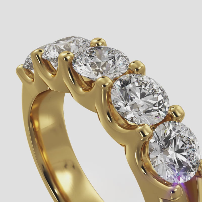 This classic diamond anniversary ring features a U Shape common prong design that hold each brilliant cut round diamond. The Five Stone Diamond Ring is a classic design.