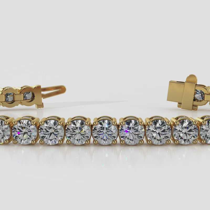This eye-catching tennis bracelet features sparkle from every angle, with round diamonds expertly set into both sides of this classic tennis bracelet setting.